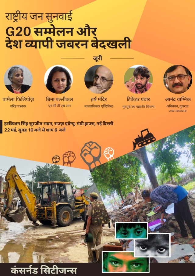Join us for a public hearing on May 22 in Delhi on ‘The Forced Eviction Across India and G20 Events.’