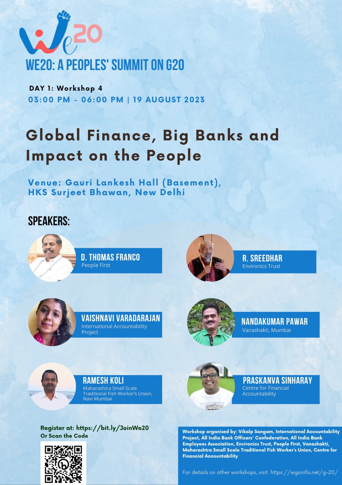 An integral part of the discussions in the G20 events has been exploring the various avenues of finance to achieve the sustainable development goals, address the polycrisis, ensure an inclusive digital infrastructure, etc. In doing so, the focus remained on reforming the multilateral development banks and pushing for more private capital investments. The session aims to deliberate on this neoliberal reformist model of development, the fashion in which it is imposed from above disregarding the people’s voices, and its implications on the poor and the marginalised communities.