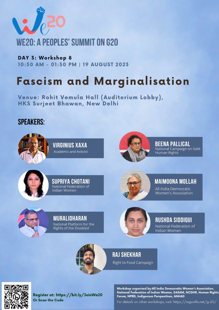 A term that has been repeatedly reiterated in G20 events is ‘inclusive’ which implies, quite rightly, that the current financial, social and political structures have failed to address social hierarchies of gender, disability, caste, religious and ethnic identities. According to multiple reports on the evictions and demolition drives prior to and during the G20 mega-events, the worst-affected people have been the caste and religious minorities, transgender people, and other vulnerable communities. The session aims to hold a discussion on these persistent social marginalities.