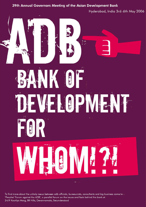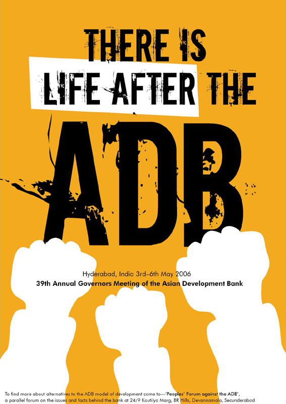 Posters from the protests against the 39th Annual General Meeting of the Asian Development Bank in Hyderabad in May 2006.